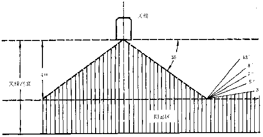 771 以天線為中心,半徑300 m以內(nèi)場地應(yīng)平坦開闊,一切障礙物的高度不應(yīng)超出圖 8所示的陰影區(qū)。