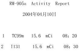 6、專用熱敏打印機輸出核素活度測量報告。